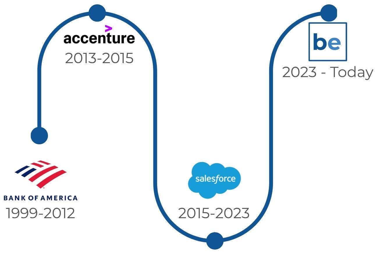 I started at Bank of America at 16, working as a teller while learning the unspoken rules of corporate life. Over the next decade, I grew up in that system — from customer-facing roles to back-office support functions — and saw firsthand how difficult it can be to create change inside an organization that large. I was often the one helping others interpret the changes coming their way, making sense of the documentation and direction we were given. Over time, I began working more closely with internal transformation efforts, coaching banking center leaders across the nation as they navigated major shifts in how the organization operated.